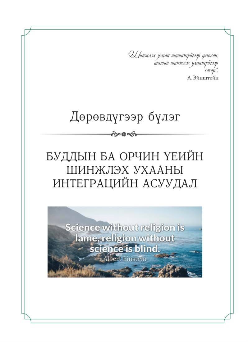 ДӨРӨВДҮГЭЭР БҮЛЭГ. БУДДЫН БА ОРЧИН ҮЕИЙН ШИНЖЛЭХ УХААНЫ ИНТЕГРАЦИЙН АСУУДАЛ